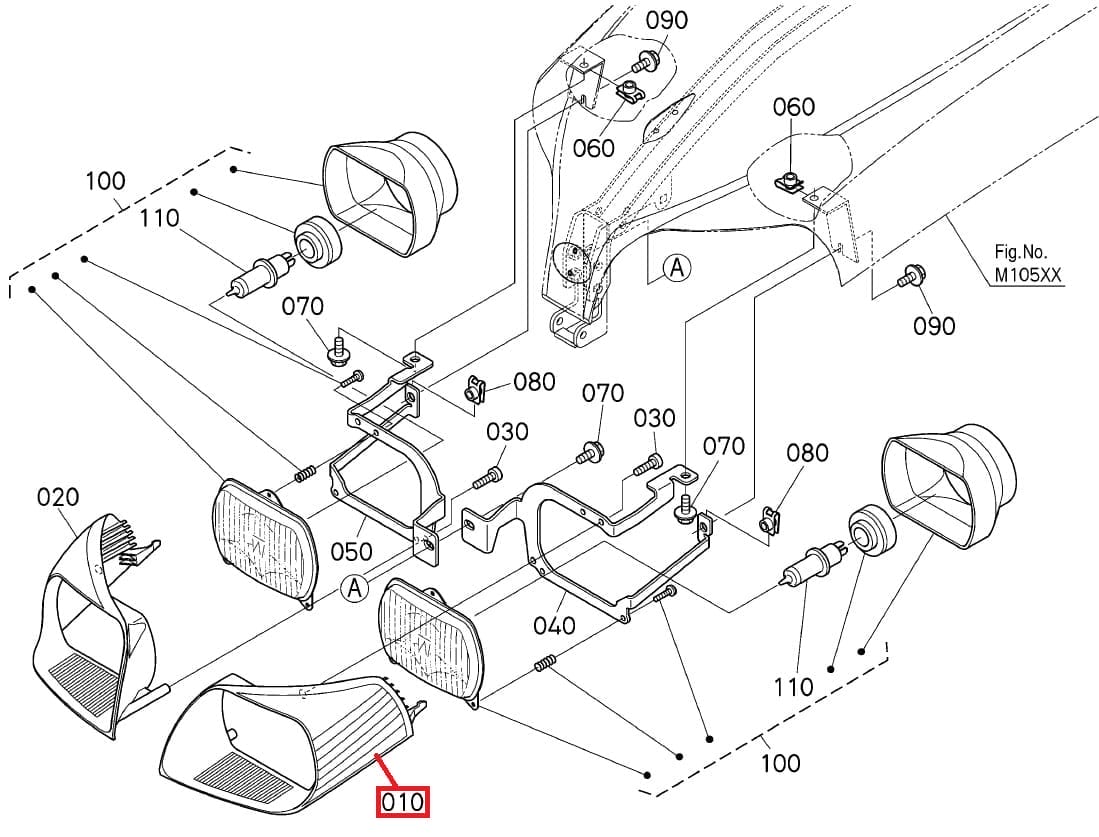 A replacement Genuine headlamp surround supplied by Kubota